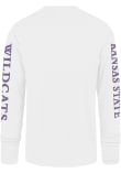 Make a bold statement in this K-State Wildcats White Triple Down II Franklin Long Sleeve Fashion T Shirt! This K-State Wildcats Long Sleeve Fashion Tee features a screen print team name down both sleeves with team logo on front left chest. Fear The Cats!