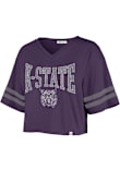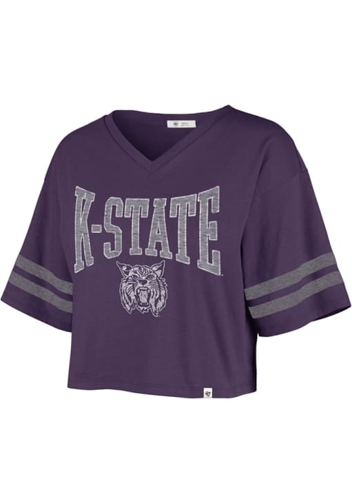 Display your team spirit with this remarkable K-State Wildcats Purple Fanfare Sporty Crop Short Sleeve T-Shirt! The K-State Wildcats Short Sleeve Tee showcases a screen print team name and logo on center chest that truly sets it apart. Stand out from the crowd and proudly declare your allegiance to the Wildcats with this exceptional Purple K-State Wildcats T-Shirt. Fear The Cats!