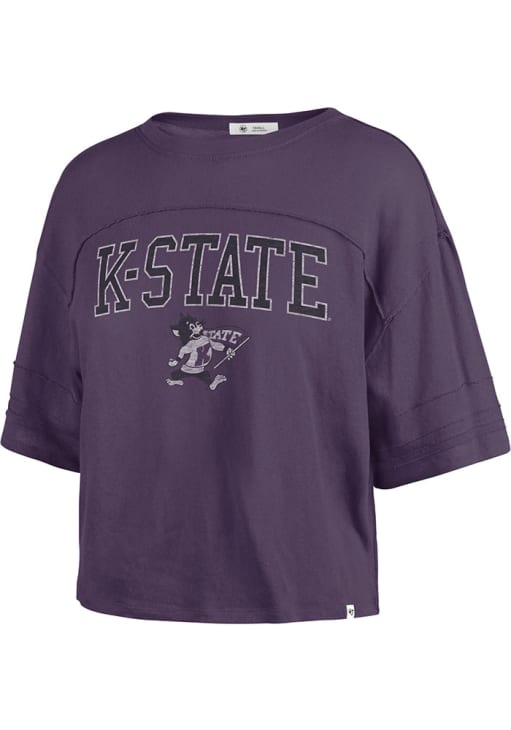 Display your team spirit with this remarkable K-State Wildcats Purple Stevie Short Sleeve T-Shirt! The K-State Wildcats Short Sleeve Tee showcases a screen print team name and logo on center chest that truly sets it apart. Stand out from the crowd and proudly declare your allegiance to the Wildcats with this exceptional Purple K-State Wildcats T-Shirt. Fear The Cats!