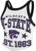 Elevate your tailgating style with this K-State Wildcats Womens Tank Top. Stay fashionable and comfortable in the refreshing White Energize Sleeveless Shirt. Discover the enticing details of this K-State Wildcats Tank Top, showcasing a screen vintage print team logo and team name with silver glitter on center chest that's sure to impress.