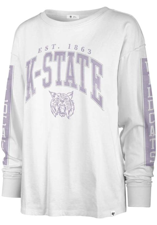 Show your K-State Wildcats spirit in this K-State Wildcats White T-Shirt! This K-State Wildcats Statement Soa Long Sleeve T-Shirt makes a great layer for cooler nights cheering on the Wildcats. Featuring a screen print team name and logo on center chest and team name screen printed down both sleeves, this K-State Wildcats Long Sleeve LS Tee is an essential addition for every fan. Fear The Cats!
