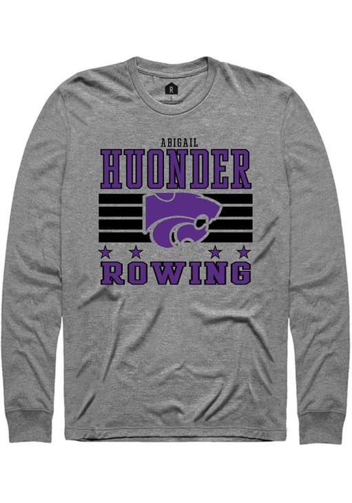 Embrace the spirit of your favorite player in this K-State Wildcats Grey NIL Striped Abigail Huonder Long Sleeve Player Tee! This Player T Shirt features a NIL graphic, so everyone will know you cheer for K-State Wildcats, Abigail Huonder! This is the perfect Wildcats Player Tee for game days. Fear The Cats!