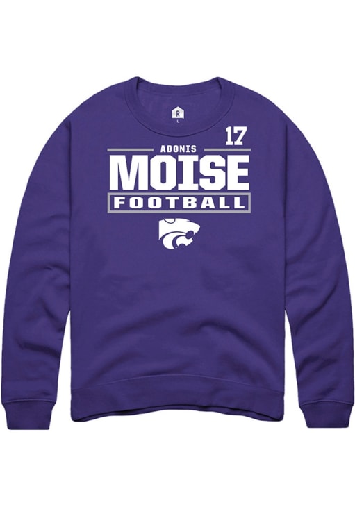 Support your K-State Wildcats and favorite Adonis Moise in this K-State Wildcats Mens Purple Football NIL Stacked Box Player Crew. This Crew Sweatshirt features a NIL graphic, and is sure to stand out in the stadium. Perfect to wear on game day or any day!