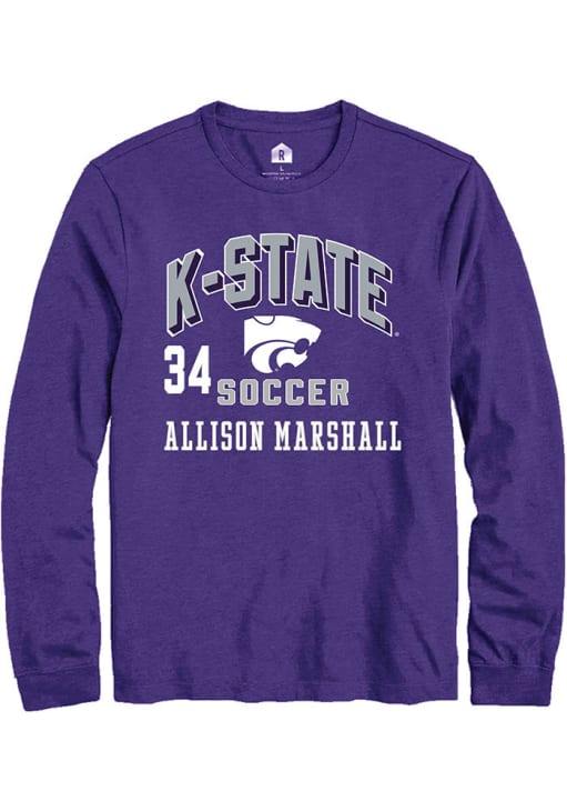 Embrace the spirit of your favorite player in this K-State Wildcats Purple NIL Arch Logo Allison Marshall Long Sleeve Player Tee! This Player T Shirt features a NIL graphic, so everyone will know you cheer for K-State Wildcats, Allison Marshall! This is the perfect Wildcats Player Tee for game days. Fear The Cats!