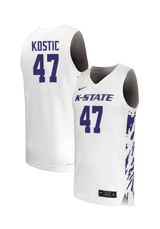 Andrej Kostic Mens White K-State Wildcats NIL Name And Number Basketball Jersey