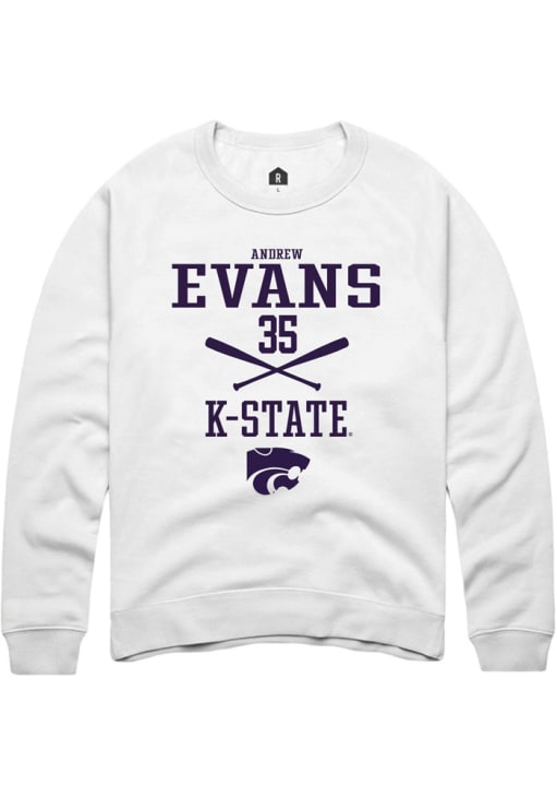 Andrew Evans Rally Mens White K-State Wildcats NIL Sport Icon Crew Sweatshirt