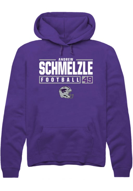 Andrew Schmelzle Rally Mens Purple K-State Wildcats NIL Stacked Box Hooded Sweatshirt