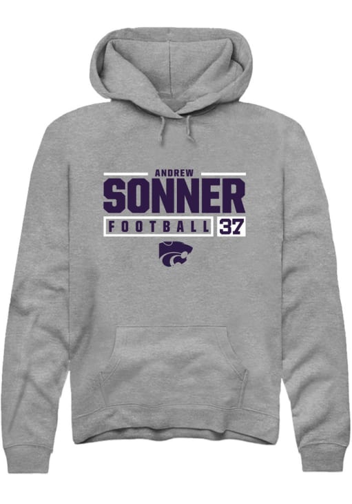 Andrew Sonner Rally Mens Graphite K-State Wildcats NIL Stacked Box Hooded Sweatshirt