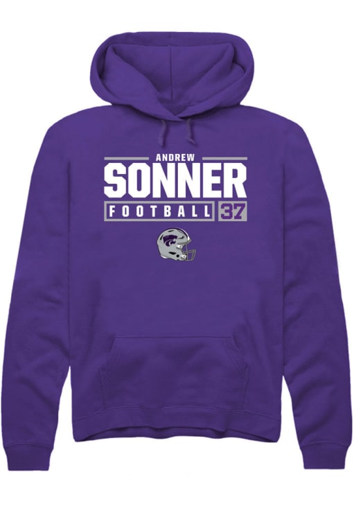 Andrew Sonner Rally Mens Purple K-State Wildcats NIL Stacked Box Hooded Sweatshirt