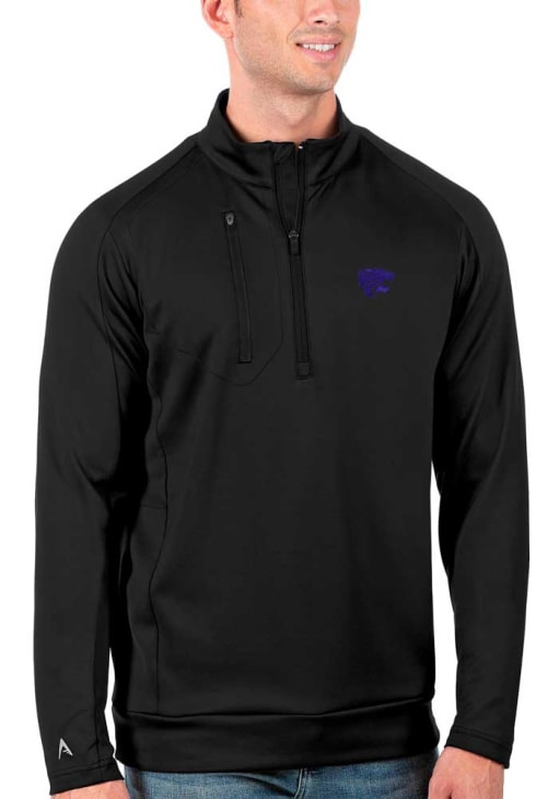 Mens K-State Wildcats Black Antigua Generation Power Cat Qtr Zip Pullover