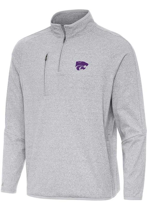 Embrace the warmth and showcase your Wildcats pride with our K-State Wildcats Long Sleeve Qtr Zip Pullover. This Mens Grey Certain Long Sleeve Pullover offers a moisture wicking and four way stretch material for the perfect combination of comfort and style. Elevate your everyday look with this must-have K-State Wildcats Long Sleeve Qtr Zip Pullover.
