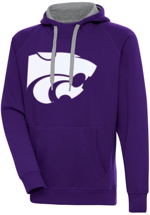 Mens K-State Wildcats Purple Antigua Full Front Victory Hooded Sweatshirt