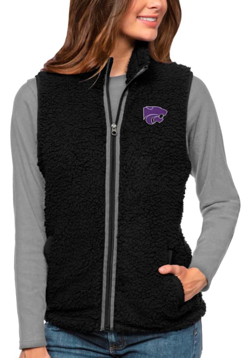Gear up for the upcoming tailgate with the ultimate K-State Wildcats Womens Black Vest. Stay warm in this K-State Wildcats Grace Sleeveless Jacket, which features a sherpa full zip vest with dyed to match woven fabric trim at welt pockets and armhole binding.