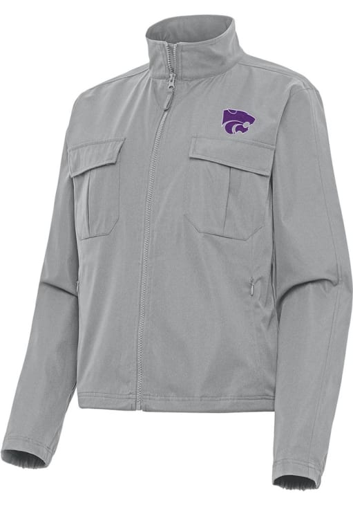 Stay warm and cozy with this K-State Wildcats Womens Grey Even Par Light Weight Jacket! Cheer on the Wildcats in this K-State Wildcats Light Weight Jacket. With a double layer collar and flat patch chest pockets, you won't want to be caught without this Light Weight Jacket on gameday.