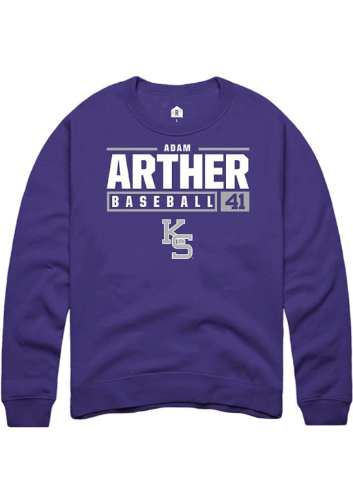 Adam Arther Rally Mens Purple K-State Wildcats NIL Stacked Box Crew Sweatshirt