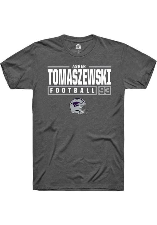 Asher Tomaszewski Dark Grey K-State Wildcats NIL Stacked Box Short Sleeve T Shirt