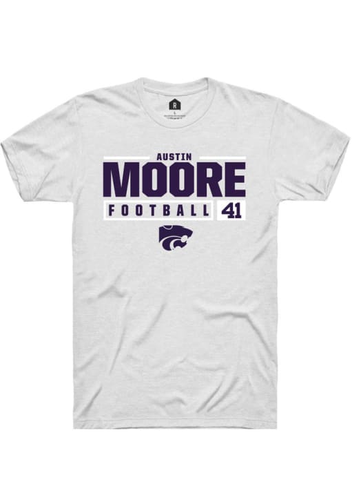 Austin Moore White K-State Wildcats NIL Stacked Box Short Sleeve T Shirt