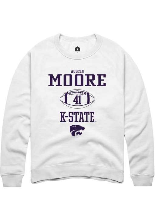 Support your K-State Wildcats and favorite Austin Moore in this K-State Wildcats Mens White NIL Sport Icon Player Crew. This Crew Sweatshirt features a custom graphic with player's name and number, and is sure to stand out in the stadium. Perfect to wear on game day or any day!