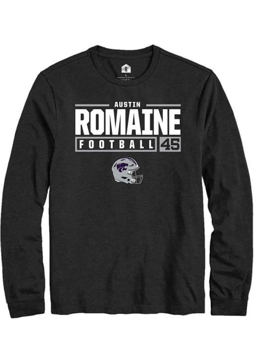 Austin Romaine Rally Mens Black K-State Wildcats NIL Stacked Box Tee