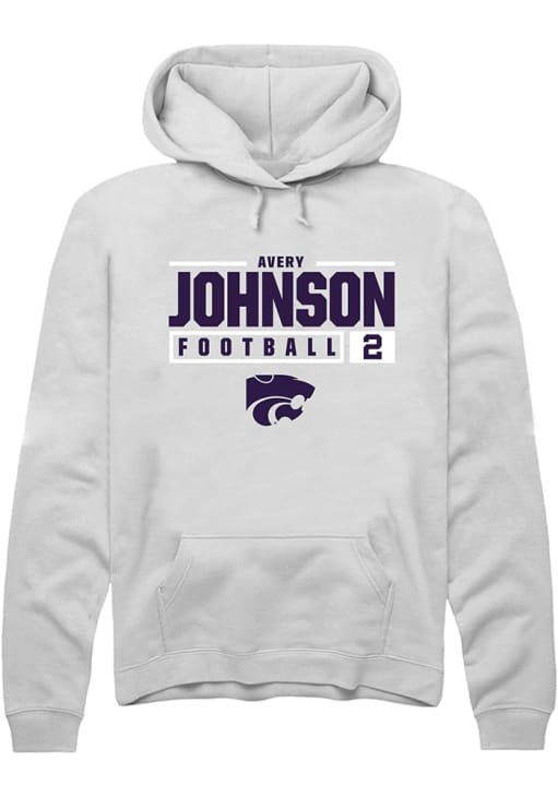 Avery Johnson Rally Mens White K-State Wildcats NIL Stacked Box Hooded Sweatshirt
