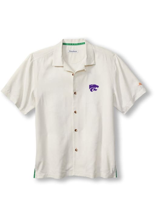 Mens K-State Wildcats White Tommy Bahama Coconut Football Matchup Camp Short Sleeve Dress Shirt