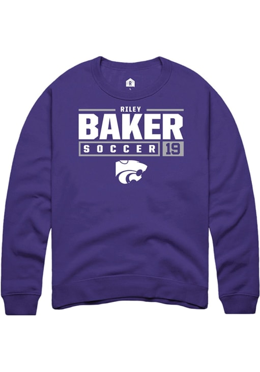 Riley Baker Rally Mens Purple K-State Wildcats NIL Stacked Box Crew Sweatshirt