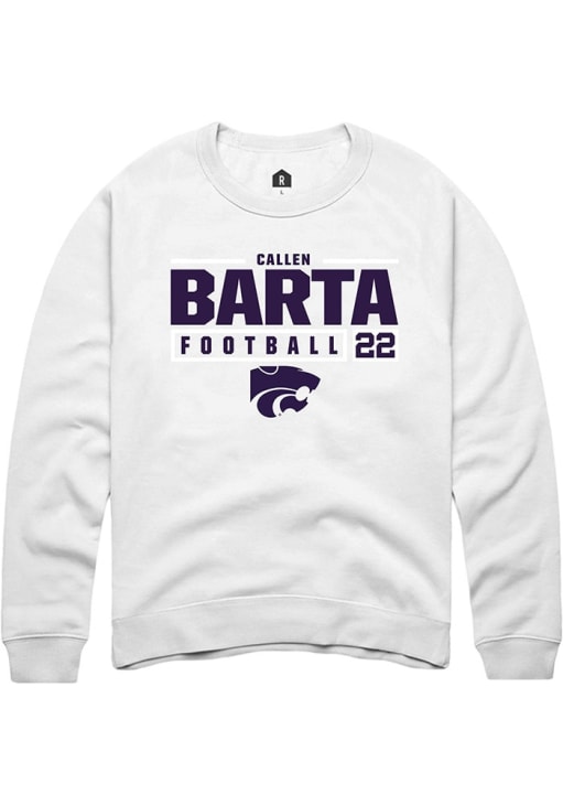 Callen Barta Rally Mens White K-State Wildcats NIL Stacked Box Crew Sweatshirt