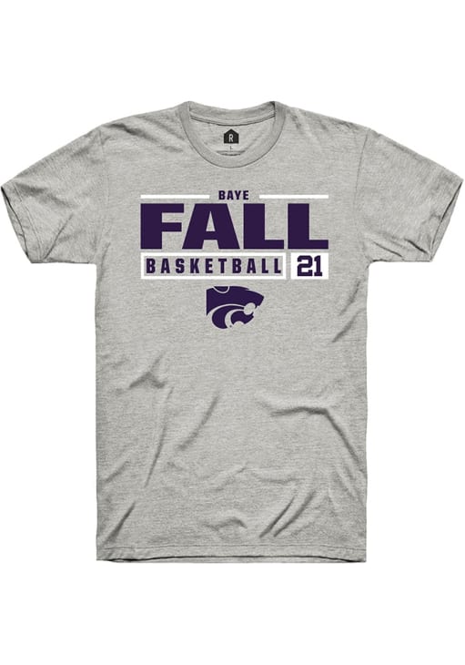 Baye Fall Ash K-State Wildcats NIL Stacked Box Short Sleeve T Shirt