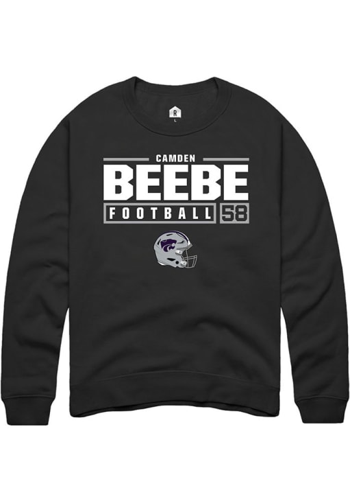Camden Beebe Rally Mens Black K-State Wildcats NIL Stacked Box Crew Sweatshirt