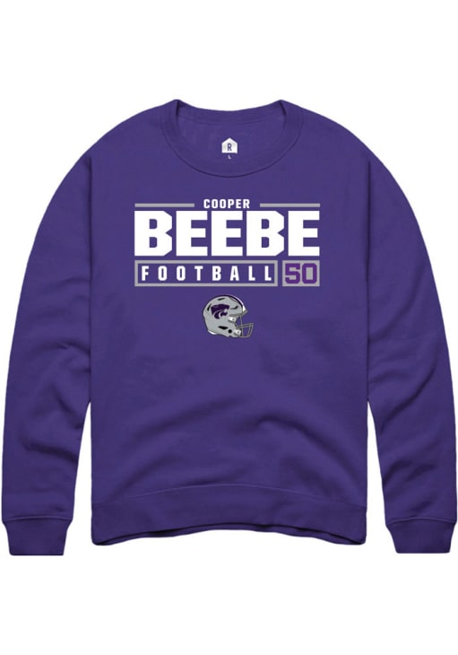 Cooper Beebe Rally Mens Purple K-State Wildcats NIL Stacked Box Crew Sweatshirt