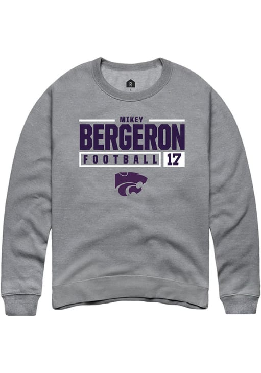 Mikey Bergeron Rally Mens Graphite K-State Wildcats NIL Stacked Box Crew Sweatshirt