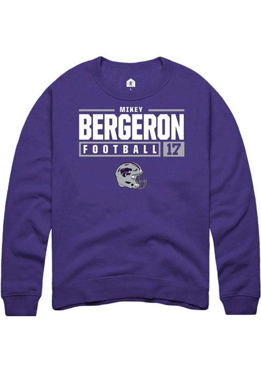 Mikey Bergeron Rally Mens Purple K-State Wildcats NIL Stacked Box Crew Sweatshirt