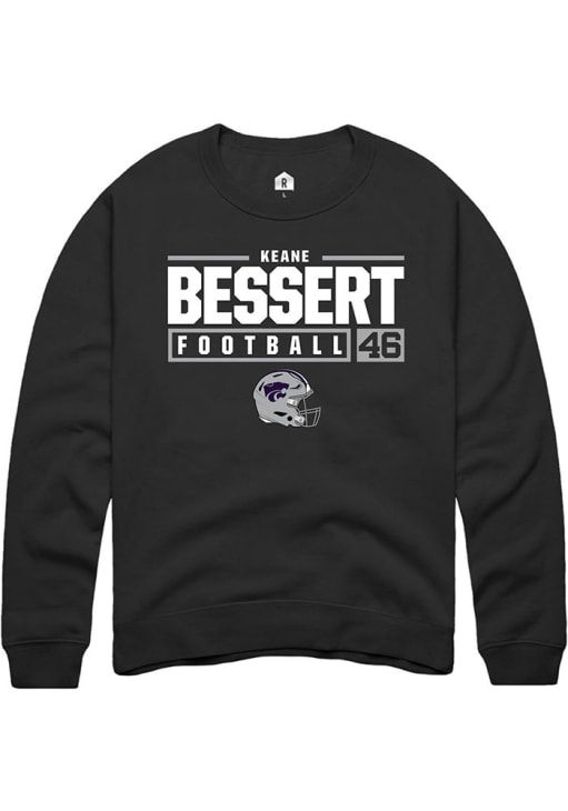 Keane Bessert Rally Mens Black K-State Wildcats NIL Stacked Box Crew Sweatshirt