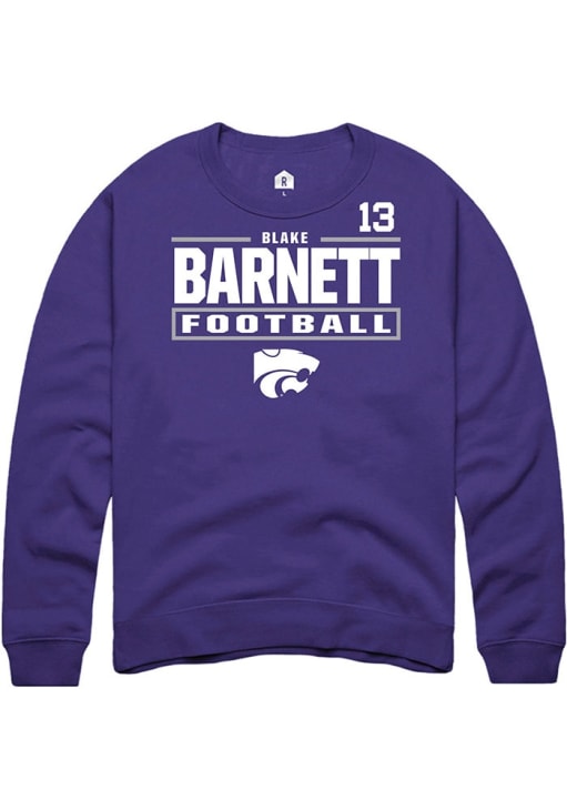 Support your K-State Wildcats and favorite Blake Barnett in this K-State Wildcats Mens Purple Football NIL Stacked Box Player Crew. This Crew Sweatshirt features a NIL graphic, and is sure to stand out in the stadium. Perfect to wear on game day or any day!