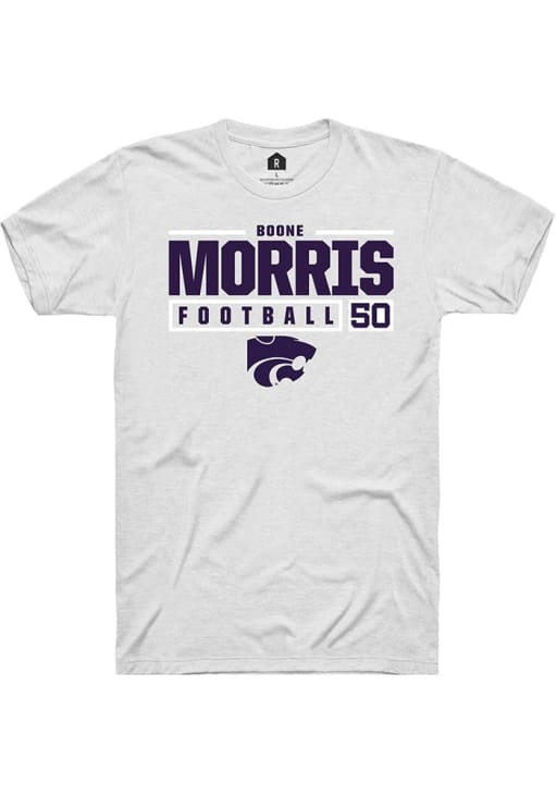 Boone Morris White K-State Wildcats NIL Stacked Box Short Sleeve T Shirt