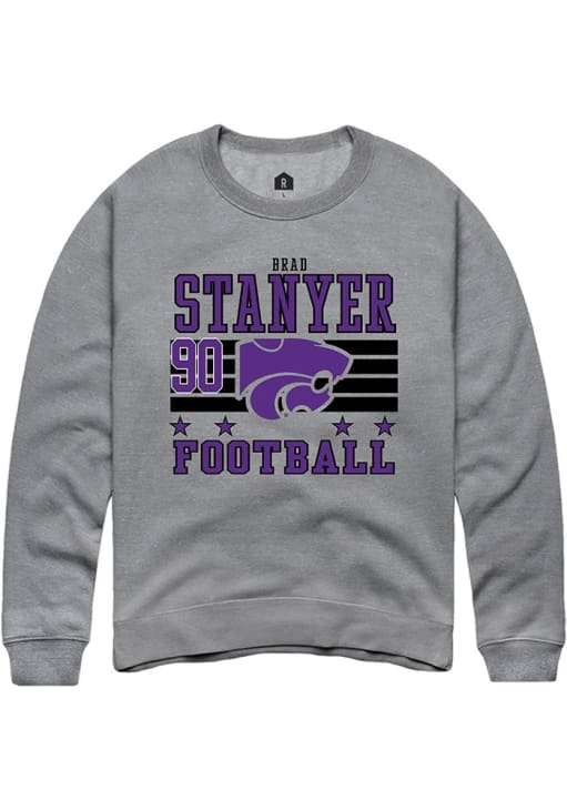 Support your K-State Wildcats and favorite Brad Stanyer in this K-State Wildcats Mens Grey Football NIL Striped Player Crew. This Crew Sweatshirt features a NIL graphic, and is sure to stand out in the stadium. Perfect to wear on game day or any day!