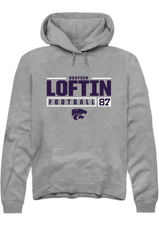 Brayden Loftin Rally Mens Graphite K-State Wildcats NIL Stacked Box Hooded Sweatshirt