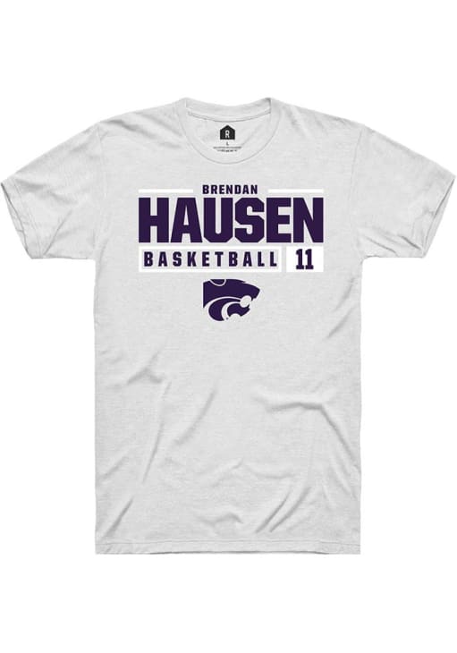Brendan Hausen White K-State Wildcats NIL Stacked Box Short Sleeve T Shirt