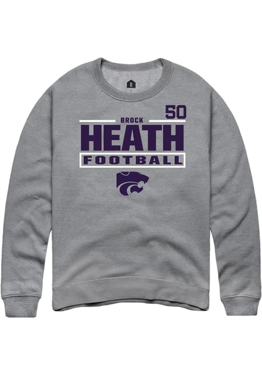 Support your K-State Wildcats and favorite Brock Heath in this K-State Wildcats Mens Graphite Football NIL Stacked Box Player Crew. This Crew Sweatshirt features a NIL graphic, and is sure to stand out in the stadium. Perfect to wear on game day or any day!