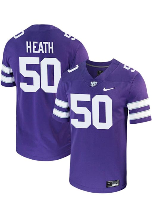 Size Chart for Brock Heath Nike Mens Purple K-State Wildcats Football NIL Game Football Jersey