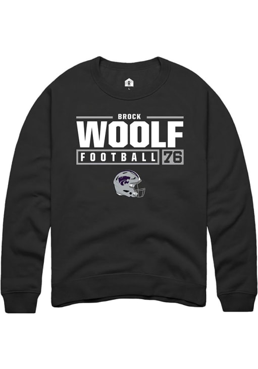 Brock Woolf Rally Mens Black K-State Wildcats NIL Stacked Box Crew Sweatshirt