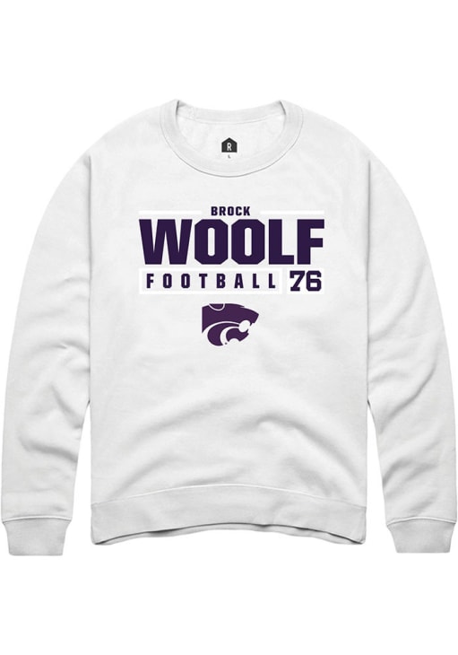 Brock Woolf Rally Mens White K-State Wildcats NIL Stacked Box Crew Sweatshirt