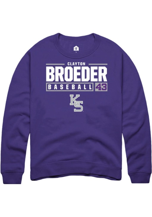 Clayton Broeder Rally Mens Purple K-State Wildcats NIL Stacked Box Crew Sweatshirt
