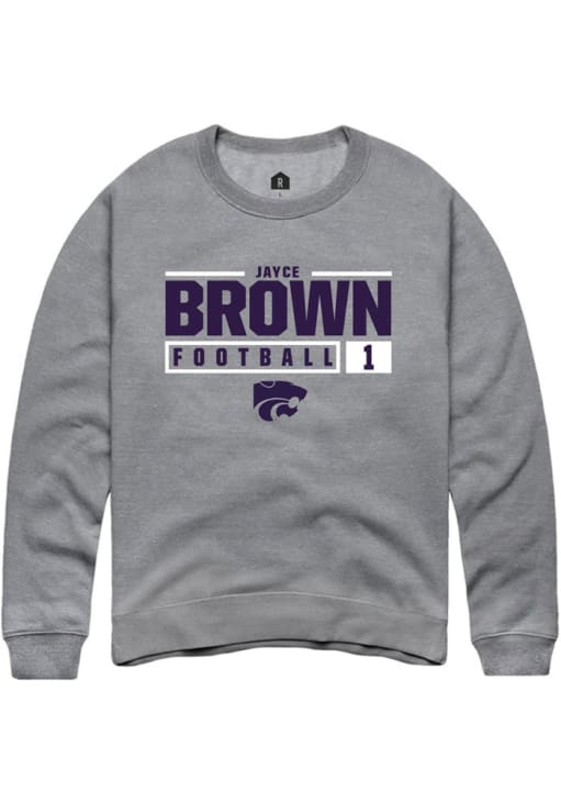 Jayce Brown Rally Mens Graphite K-State Wildcats NIL Stacked Box Crew Sweatshirt
