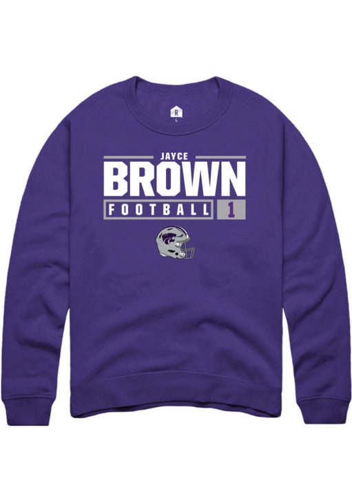Jayce Brown Rally Mens Purple K-State Wildcats NIL Stacked Box Crew Sweatshirt