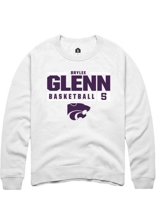 Brylee Glenn Rally Mens White K-State Wildcats NIL Stacked Box Crew Sweatshirt