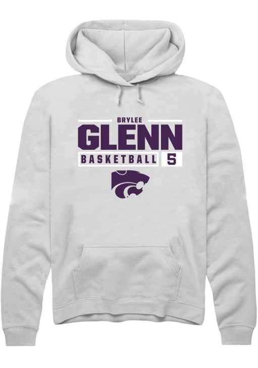 Brylee Glenn Rally Mens White K-State Wildcats NIL Stacked Box Hooded Sweatshirt