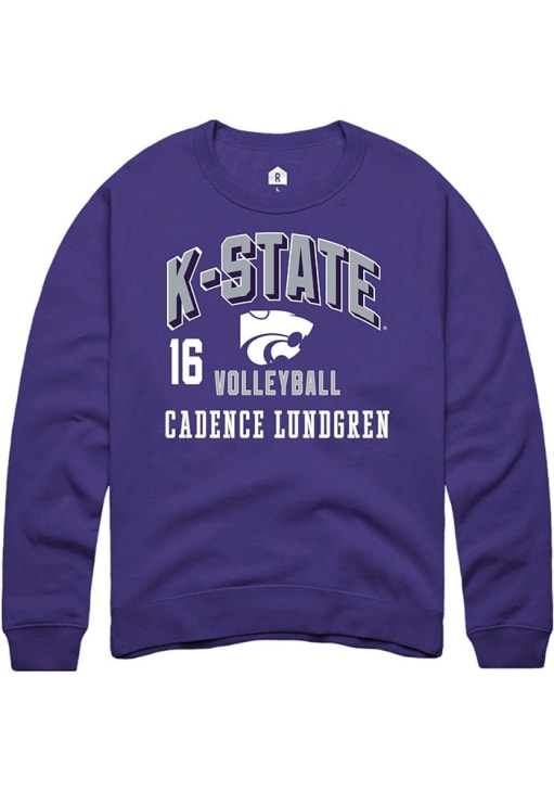 Support your K-State Wildcats and favorite Cadence Lundgren in this K-State Wildcats Mens Purple NIL Arch Logo Player Crew. This Crew Sweatshirt features a NIL graphic, and is sure to stand out in the stadium. Perfect to wear on game day or any day!