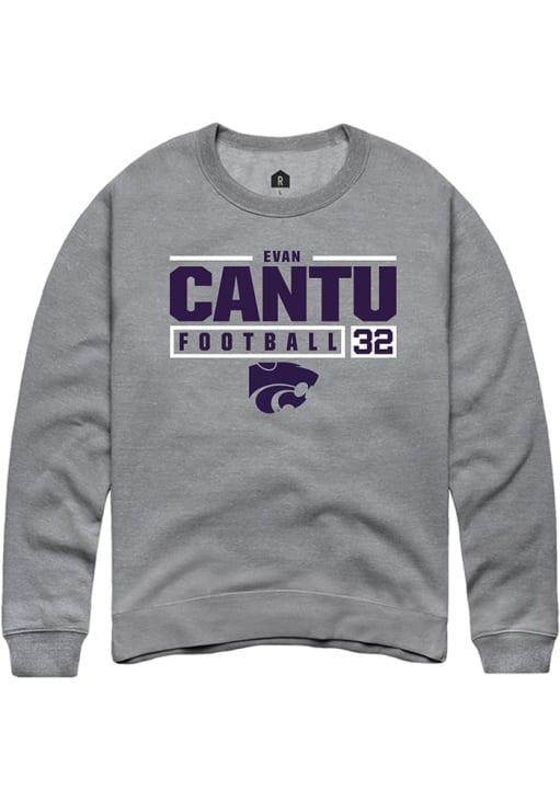 Evan Cantu Rally Mens Graphite K-State Wildcats NIL Stacked Box Crew Sweatshirt