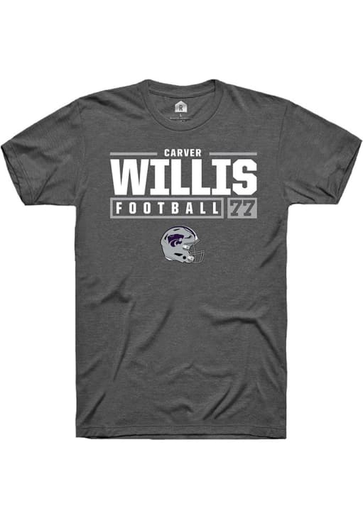 Carver Willis Dark Grey K-State Wildcats NIL Stacked Box Short Sleeve T Shirt